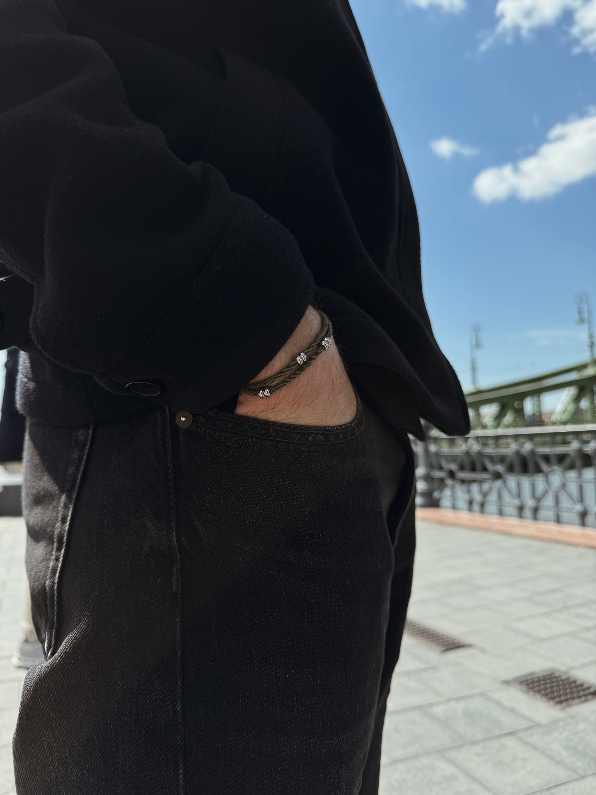 Nos bijoux associent des cordons haute résistance et des apprêts en acier inoxydable. Bien que conçus pour durer, ils restent des pièces délicates sensibles aux accrochages.